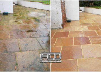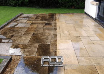 We will first power wash the entire paved area. This removes the existing build up of grime, dirt and moss on your paving. Once it has been completely and thoroughly cleaned, we will let it dry. Once dried, kiln dried sand is added back to your paving joints.