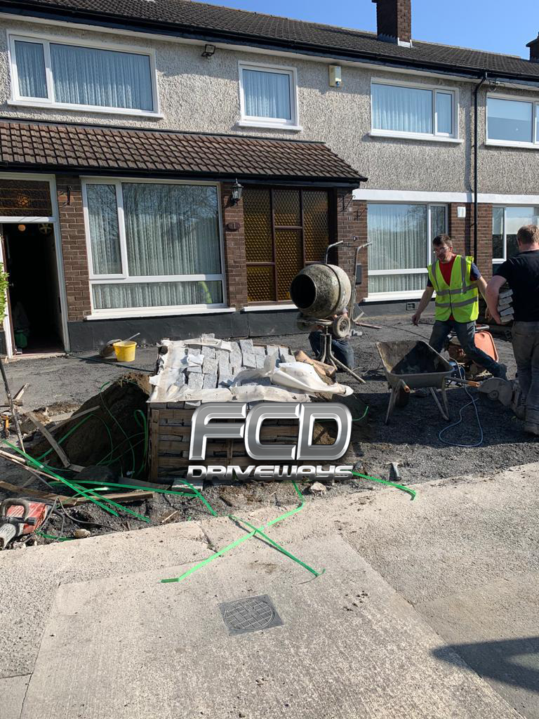 Transformation completed by Fcd DrivewaysNew driveway and wall just been done